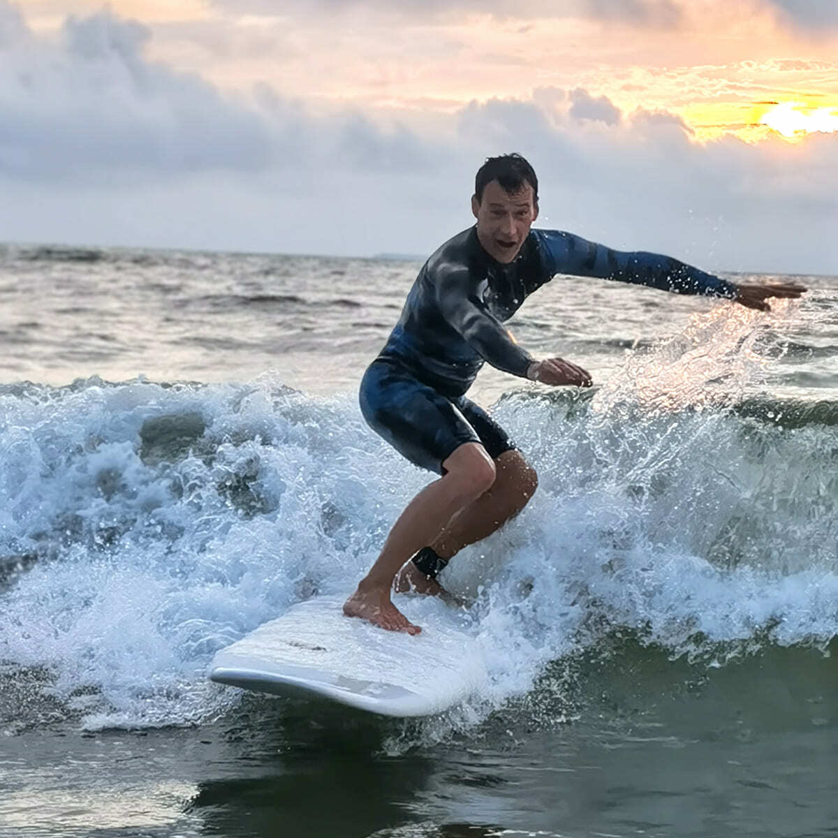 Основатель школы Surferbalt. В прошлом яхтсмен (2011 год), а сейчас тренер и главный «технолог» школы. Катает с 2015 года. Влюбит в серфинг и поставит на серф-доску любого.