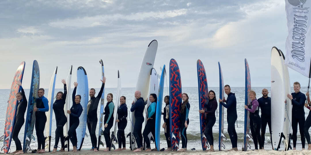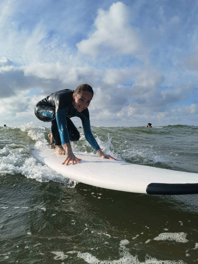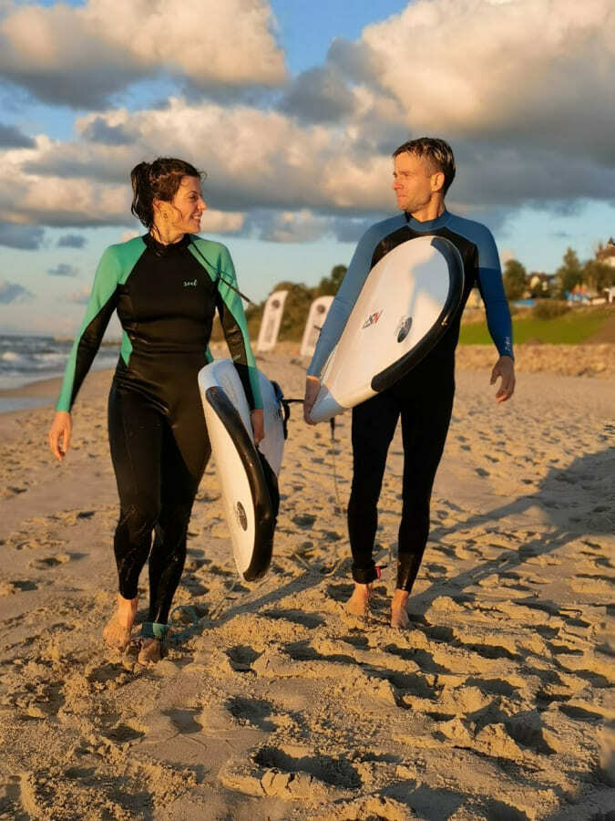 ✔ Идём на первое занятие по сёрфингу. Получаем домашнее задание и ловим свои первые балтийские волнишки